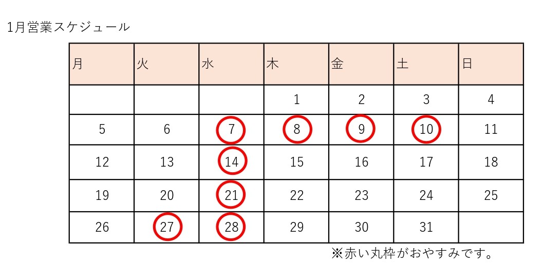 - 水曜日、 その他不定休あり (営業カレンダーをご確認ください。)